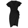 Out-Shine | Dress with V-Neck, Tight Waist, Pleating, and Bell Sleeves for Women