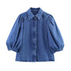 Out-Shine | Women's New Retro Style Collar Puff Sleeve Denim Shirt