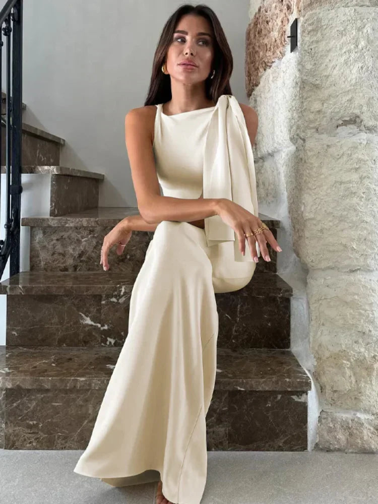 Experience the effortless grace of the Out-Shine asymmetrical dress designed to harmoniously combine style and comfort. With its elegant, floor-length silhouette, this dress is ideal for a variety of occasions, whether for occasions or special evenings. The delicate stretch ensures a pleasant fit and freedom of movement, while the simple, monochrome design allows for infinite options.