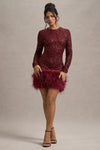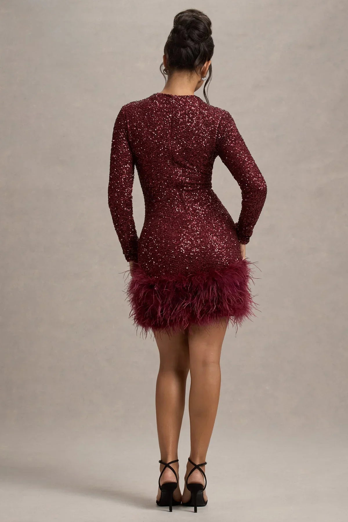 Out-Shine | Berry Sequin Feather Hem Mini Dress
