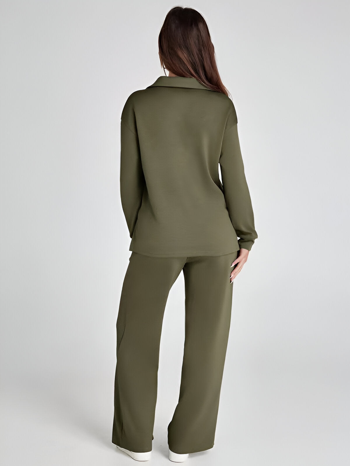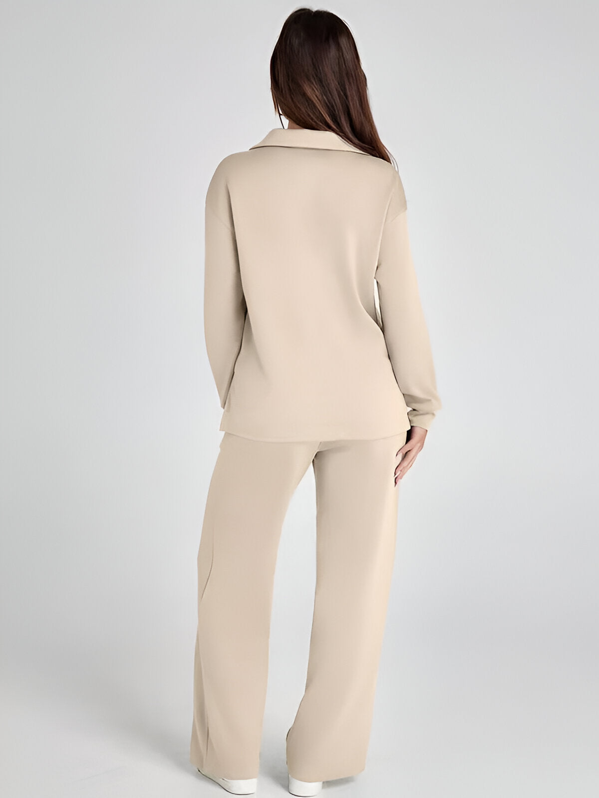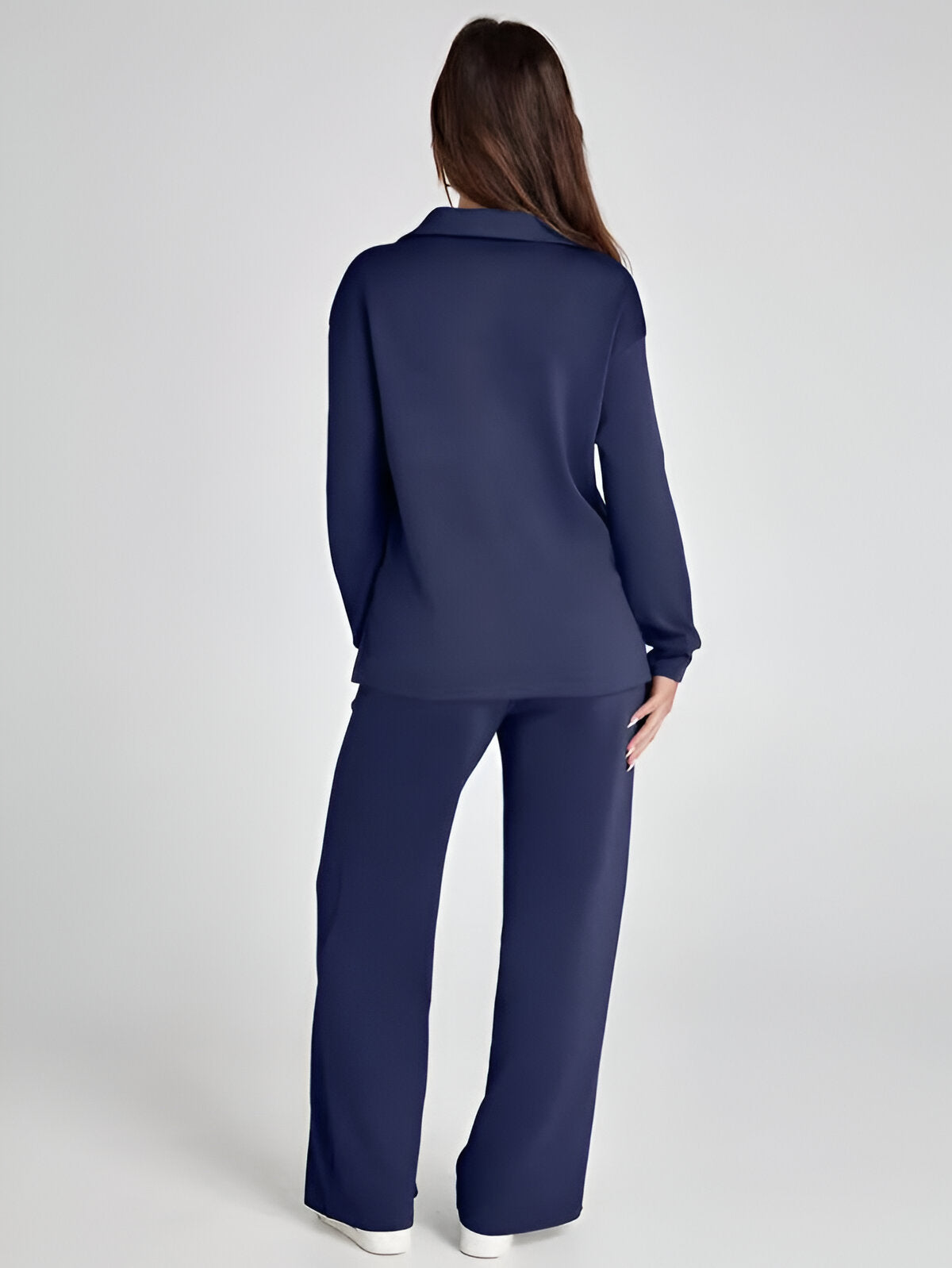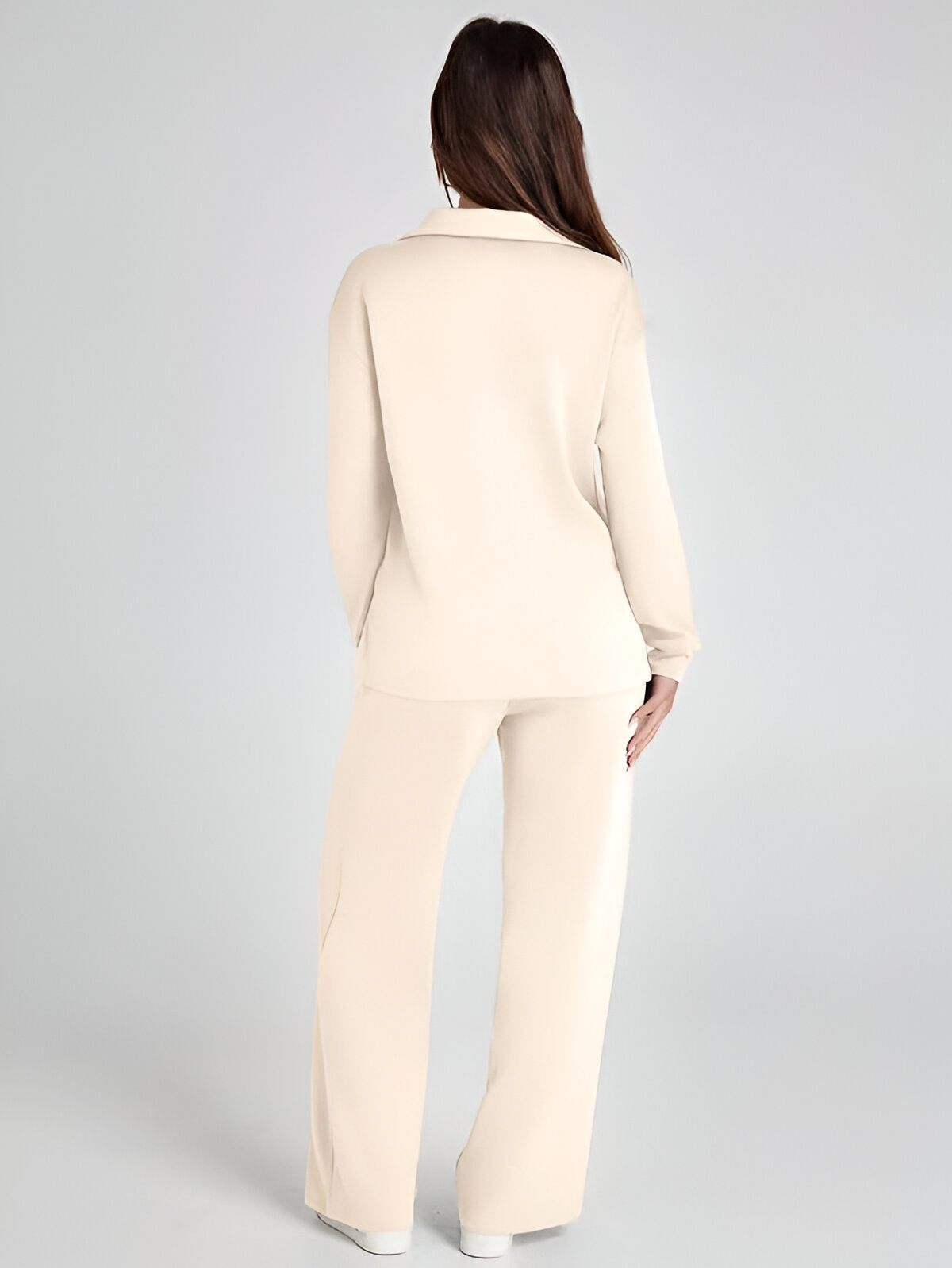 Effortlessly stylish and remarkably comfortable, the Ivyshape Casual Long Sleeve Set is the perfect option for easygoing, trendy outfits. Its appealing V-neck cut and high-waisted, wide-leg trousers make it an excellent match for both casual and sporty looks.