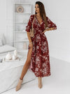 Deslumbra | Vestido largo estampado de gasa con abertura y manga corta