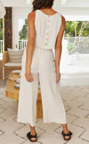 Deslumbra | Traje de pantalón ancho con chaleco sin mangas con hebilla y doble bolsillo